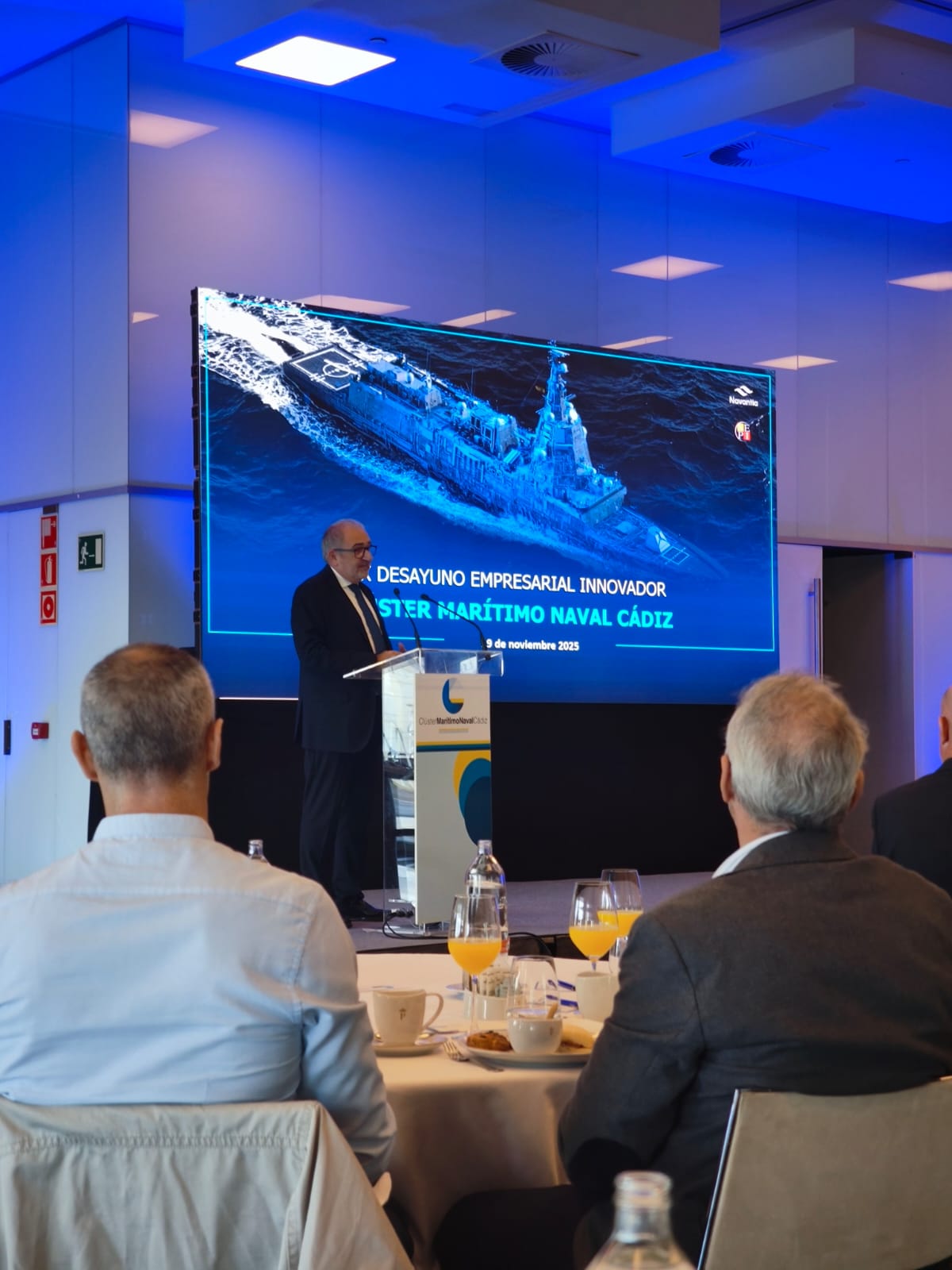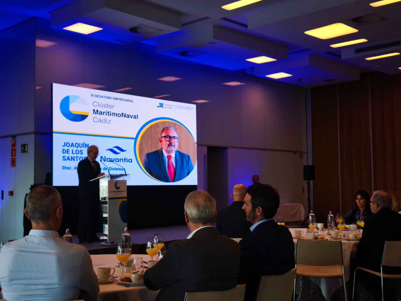 El encuentro ha contado con la intervención de Joaquín de los Santos Moreno, director de Programas de Sistemas en NAVANTIA, quien ha compartido su visión sobre los retos y oportunidades del sector naval. Tras su ponencia, se abrió un espacio para el diálogo y networking entre las empresas participantes.